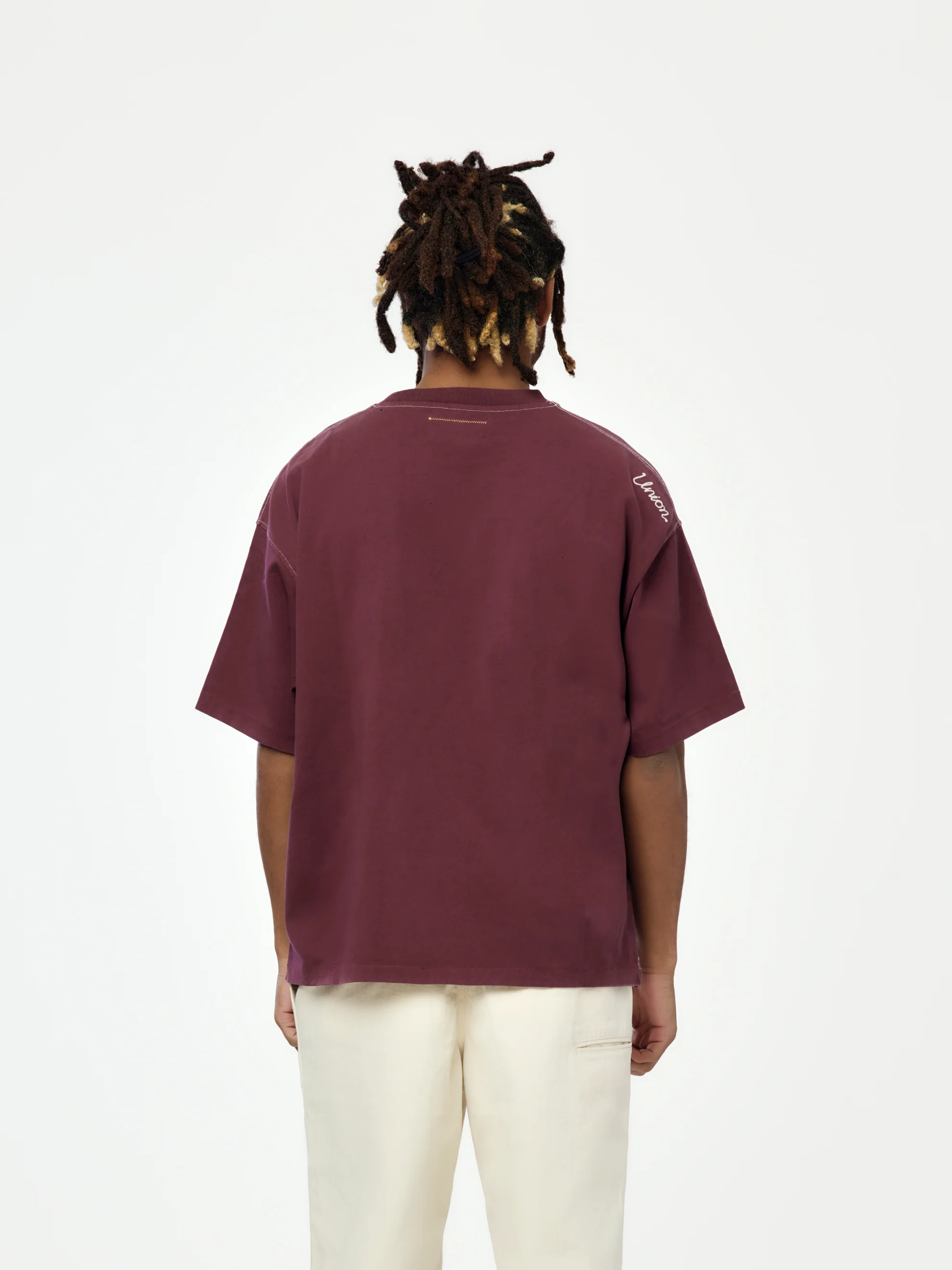The Blair Tee is Union’s spin on a vintage single-stitch. Heavy compact jersey, blind hem details, washed finish. Relaxed fit with a cropped length that hits right at the waist.