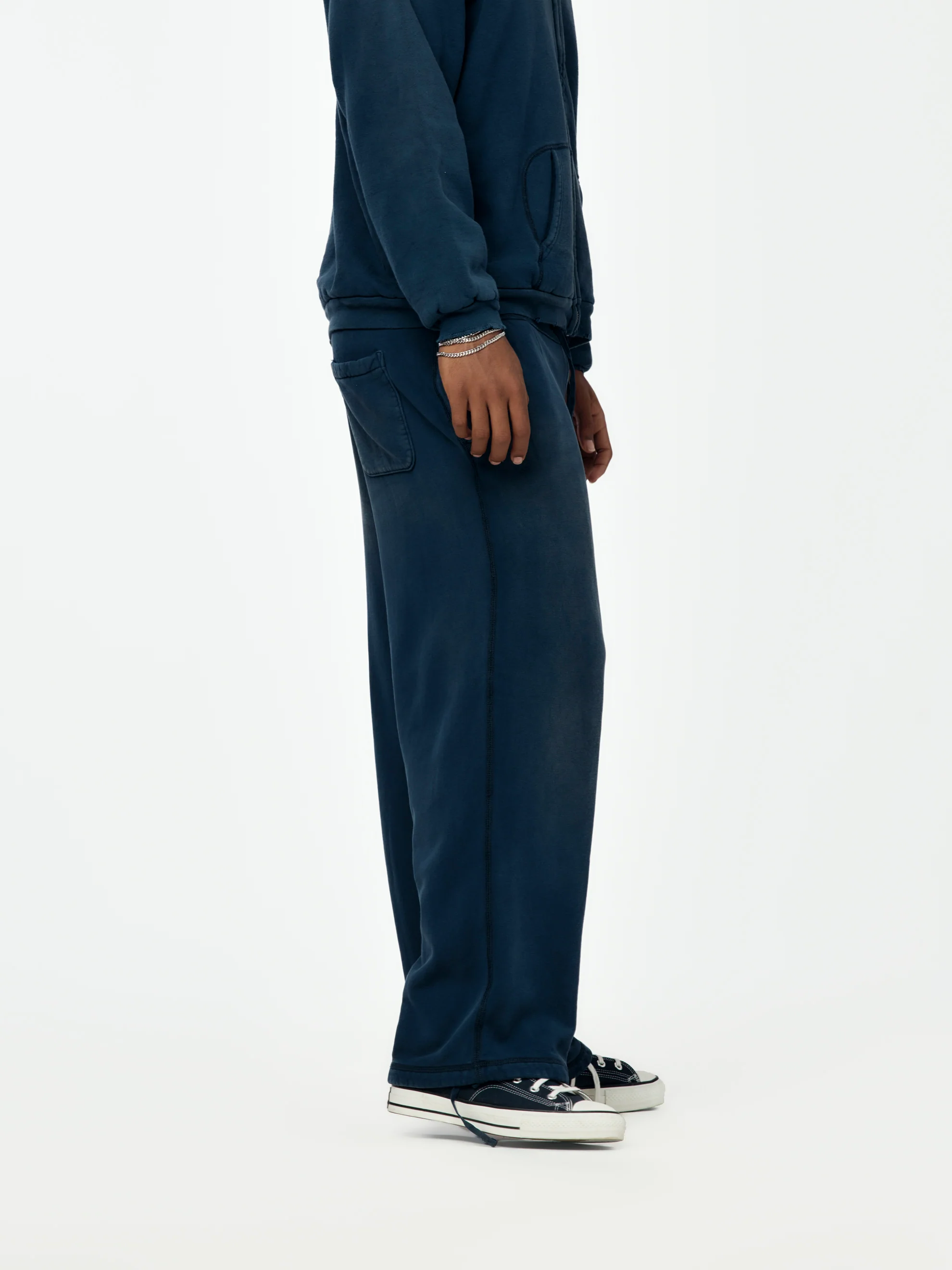 Washed, weighted, and worn-in just right — the A.PRESSE Vintage Sweatpants in Navy bring an archival athletic vibe into modern form. Crafted from dense loopback cotton fleece with a natural drape, they deliver structure without stiffness. Slightly faded tones and refined finishing make them ideal for layering or lounging. Understated, elevated, and perfectly A.PRESSE.