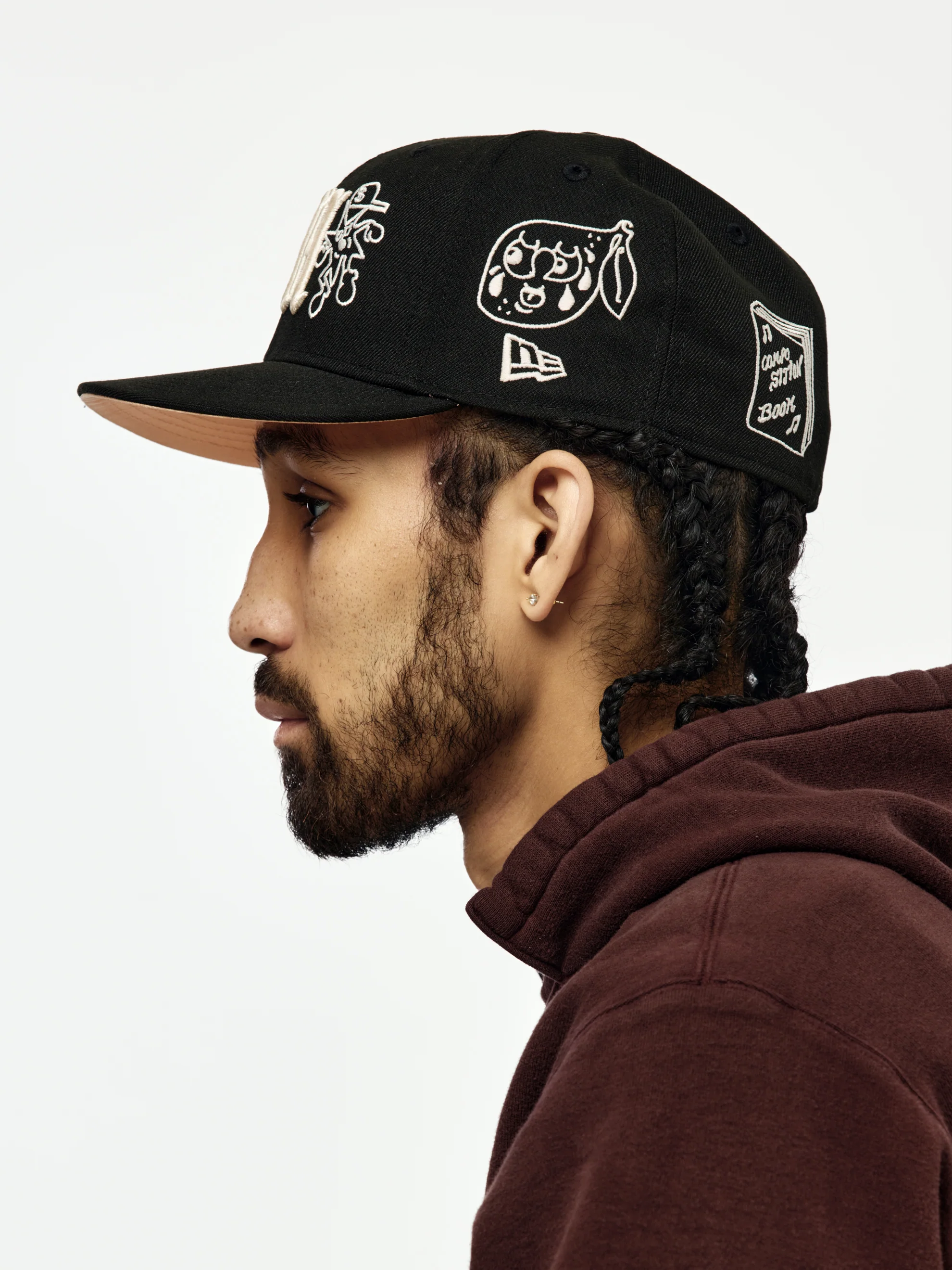 The Mora x New Era 59FIFTY fitted cap delivers a classic New Era silhouette infused with the artist’s cultural identity. Featuring a structured crown, flat brim, and custom Mora embroidery, the Black colorway offers a clean, versatile finish. Built on the iconic 59FIFTY platform, this collaborative cap blends music, streetwear, and timeless headwear design.