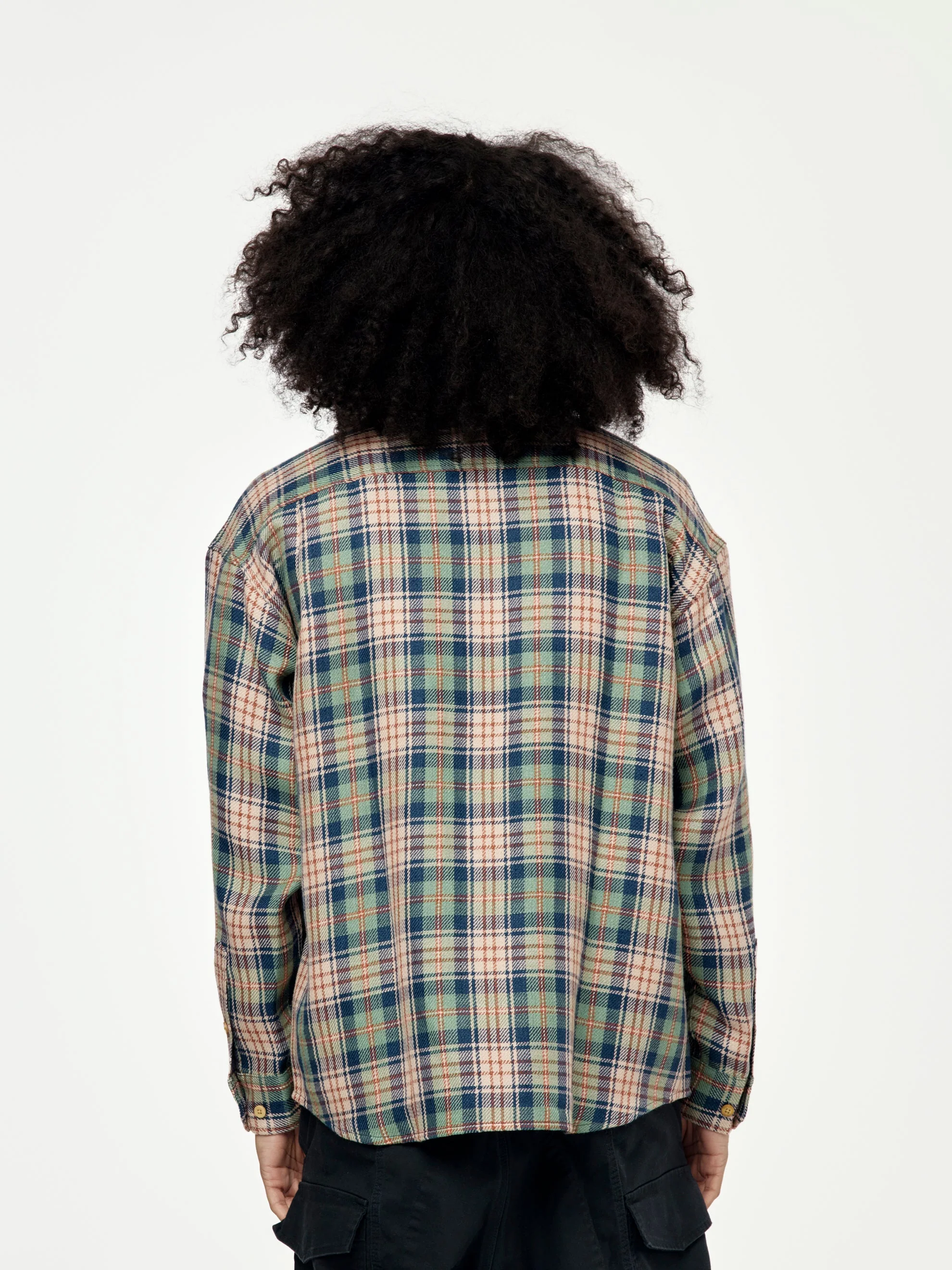 This LUMBER CHECK L/S (Navy) shirt offers a perfect blend of style and comfort. Made with a beautifully textured woven wool/linen fabric, it features a pressed finish for a polished look. The custom water buffalo buttons add a touch of uniqueness to this flannel check shirt.