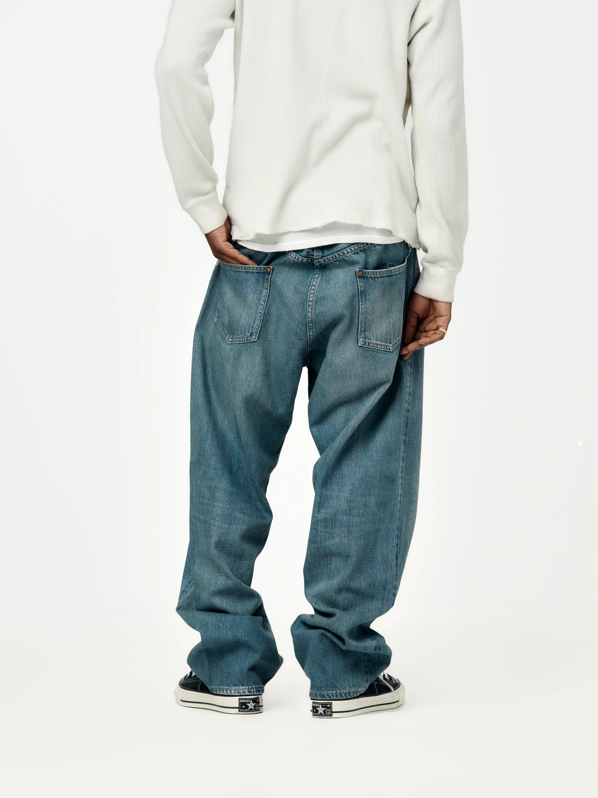 A.PRESSE keeps it quiet but calculated with the No.2 Washed Denim Pants in Indigo. Cut from premium Japanese denim, theyâre washed down for a lived-in fade that lands somewhere between vintage and modern. The fit runs straight with a slight taper â relaxed without feeling baggy â and every stitch nods to workwear made to last. Subtle distressing, tonal stitching, and a mid-weight handle make these an all-season staple. Whether youâre cuffing âem with sneakers or letting the hem stack on boots, they bring that understated flex A.PRESSE is known for.