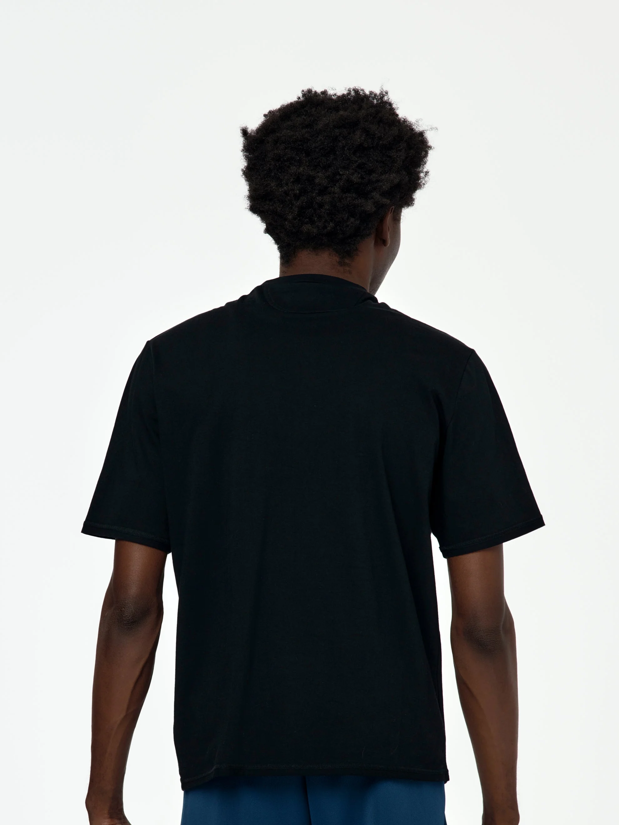 Cotton t-shirt. Reversed design featuring a logo tag on the front center collar section. Classic true to size fit.