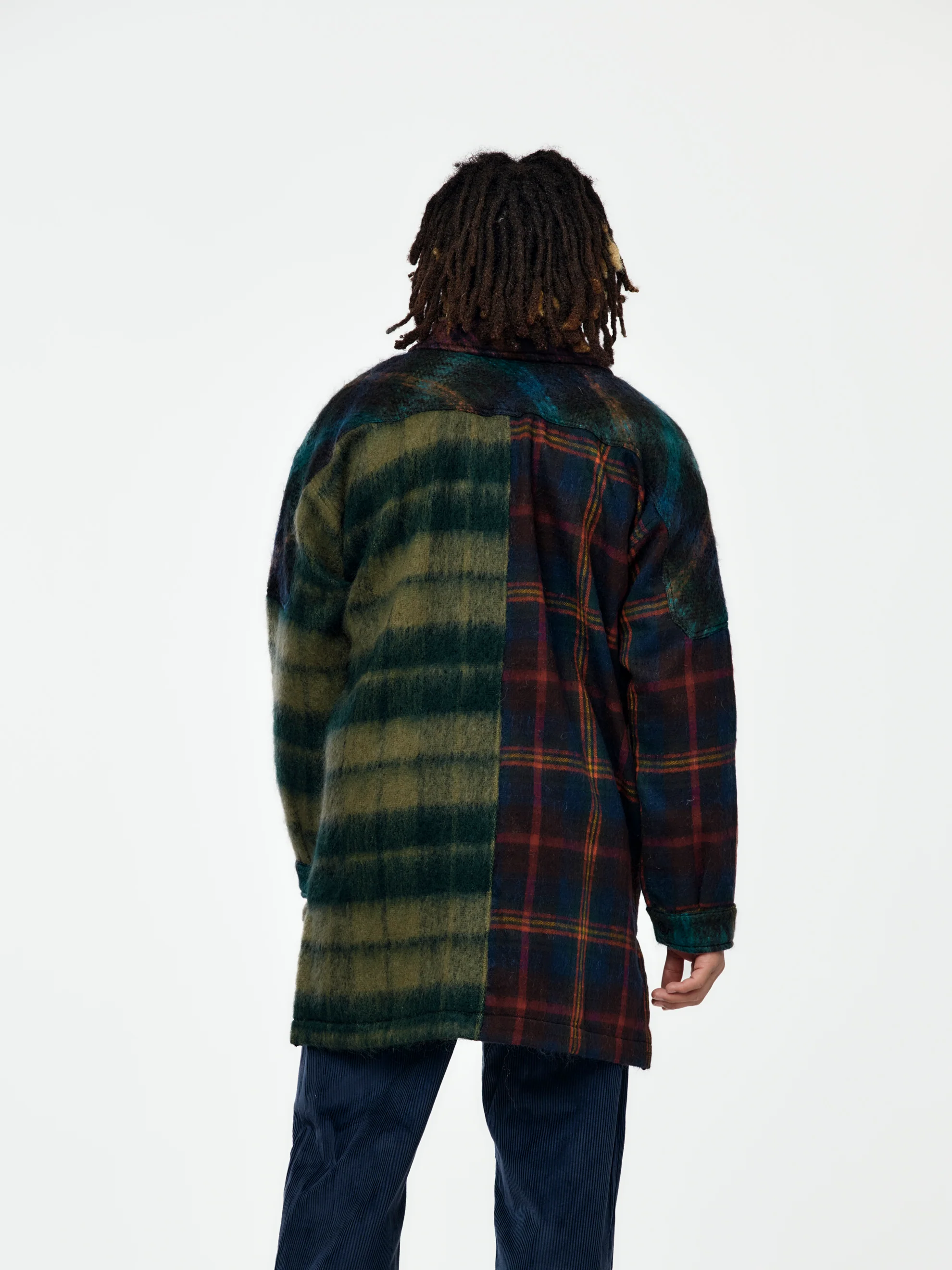 Reworking a traditional smock silhouette through his lens of heritage and rhythm, Daley’s Combo Tartan Smock blends military precision with a lived-in, hand-finished feel. Cut in mixed tartans that pay homage to Scottish textile roots, the piece layers fluidly — a statement in pattern and intention.