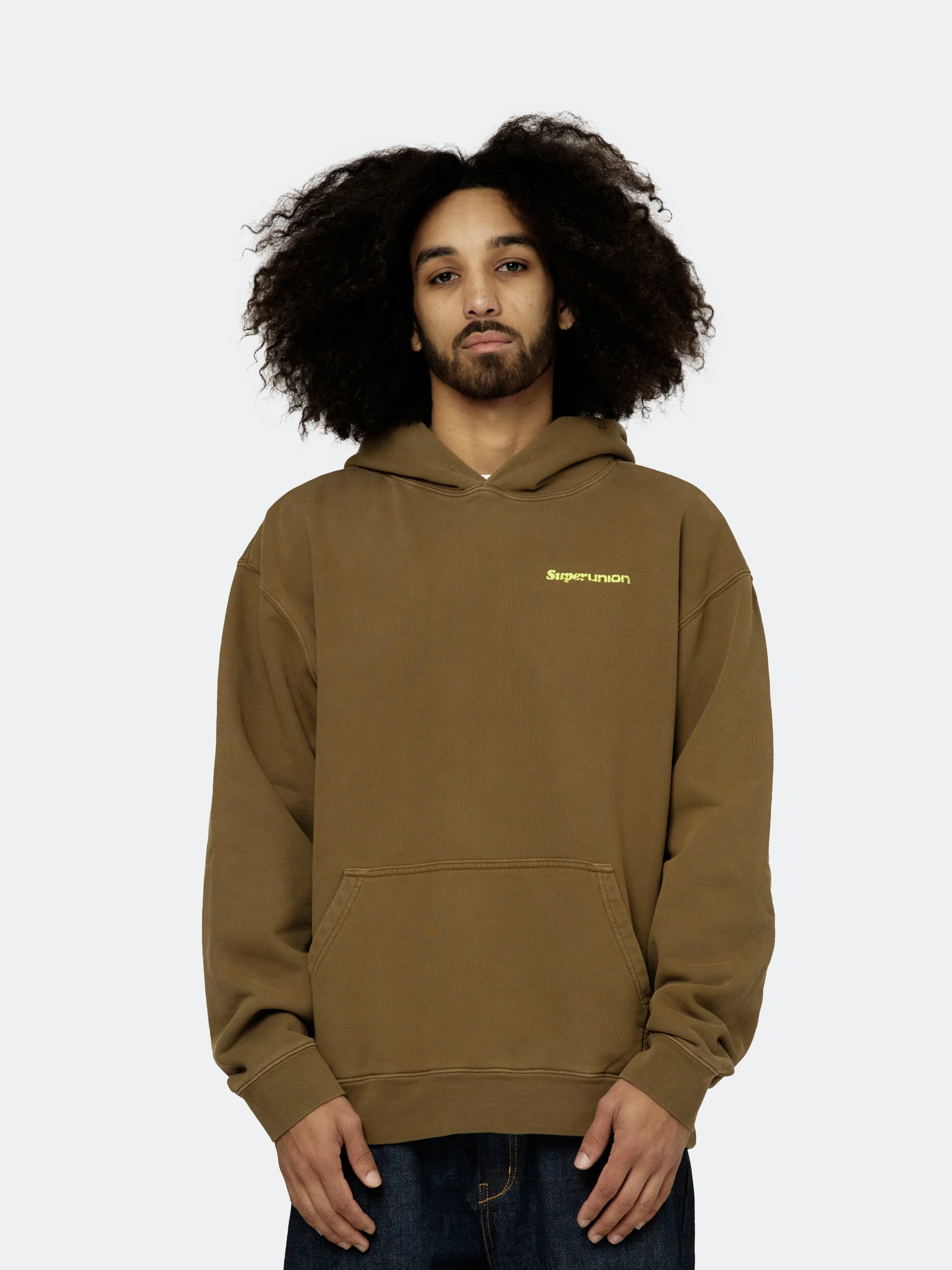 Cotton hooded graphic sweatshirt. This piece is garment-dyed for extra softness, featuring a soft hand print graphic and a kangaroo pocket for added convenience. Fits true to size. This is for a comfortable and easy look, for days where you want to have an effortless start to your day.